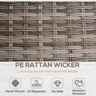 • Powder coated steel frames are strong, wrapped in UV and water-resistant plastic wicker