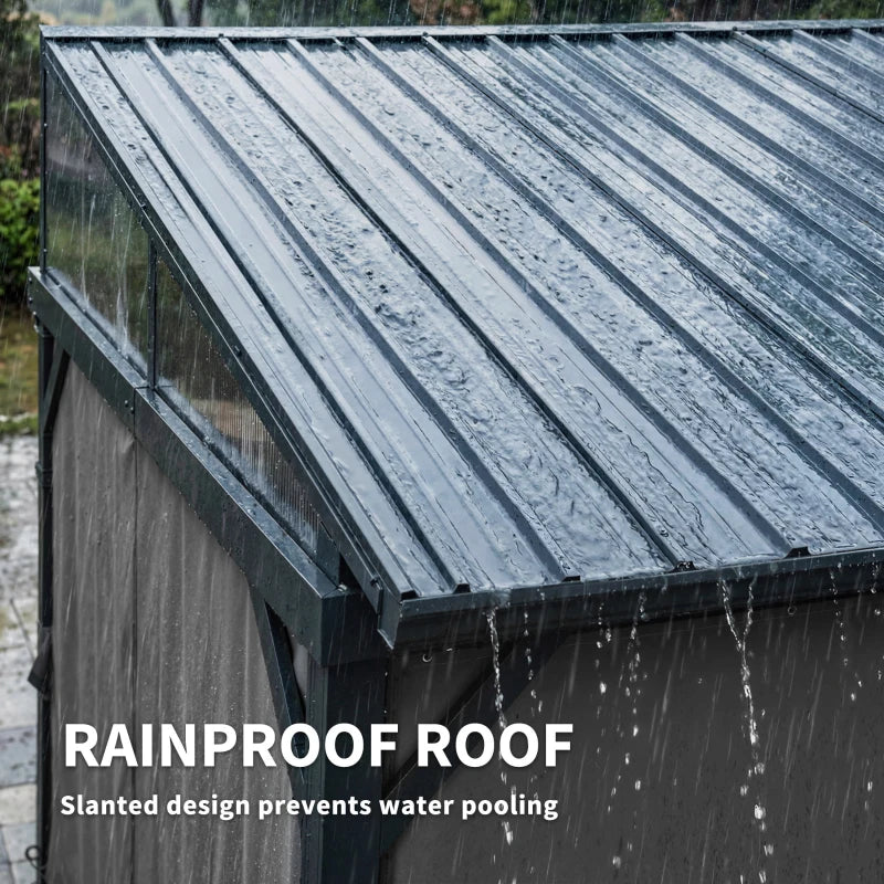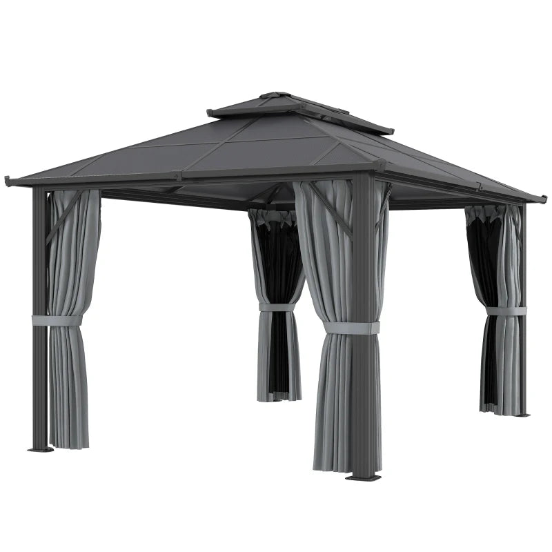 Outsunny 3 x 3.6m Hardtop Gazebo Canopy with Polycarbonate Roof Garden Pavilion with Removable Curtains and Steel Frame, Dark Grey