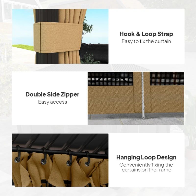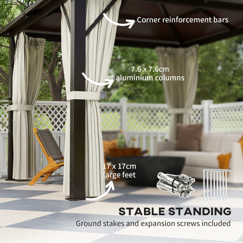 Outsunny 3 x 3(m) Metal Hardtop Gazebo, with Curtains and Accessories - Brown