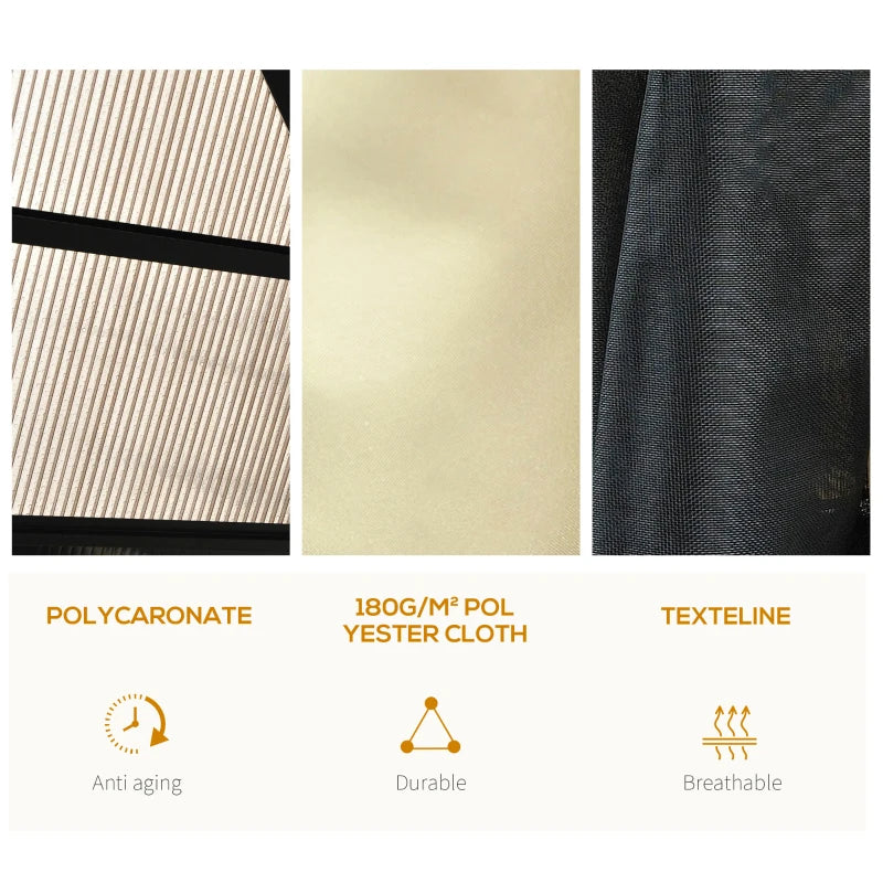 Outsunny 3 x 3 (m) Outdoor Polycarbonate Gazebo, Double Roof Hard Top Gazebo with Galvanised Steel Frame, Nettings & Curtains for Garden, Lawn, Patio and Deck, Khaki
