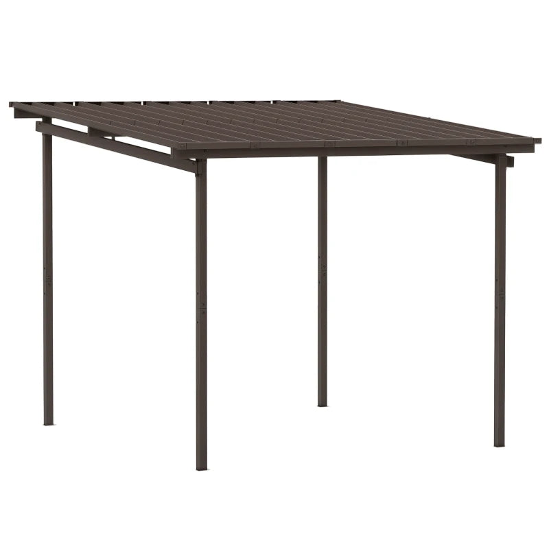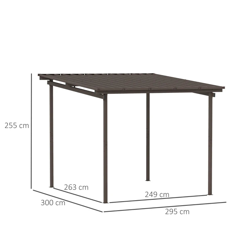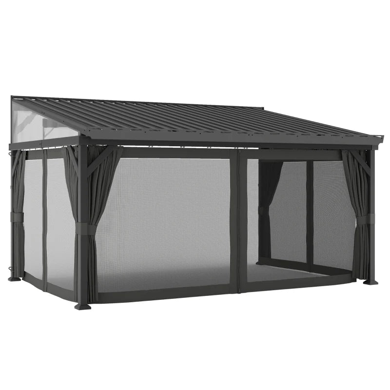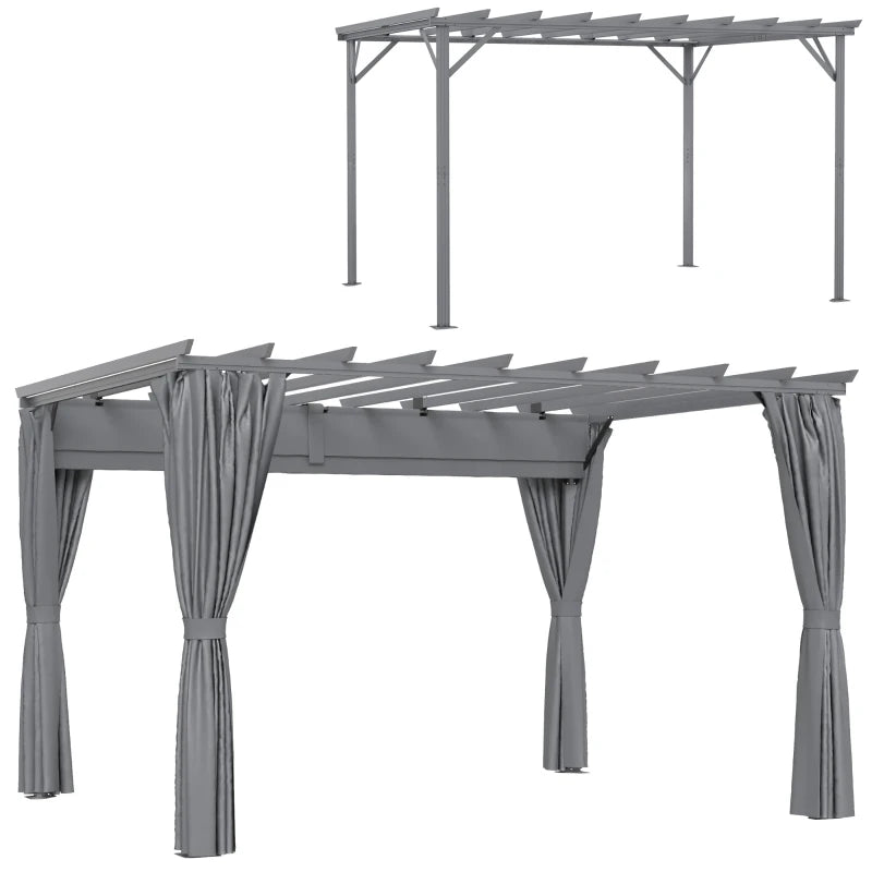 Outsunny 4.3 x 3 m Garden Pergola with Galvanised Steel Roof, Lean to Pergola Gazebo with Netting Curtains, Dark Grey