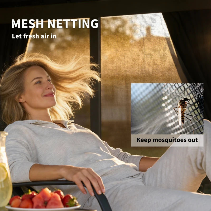 Outsunny 3m x 3m Hardtop Metal Frame Mesh Draped Gazebo Black