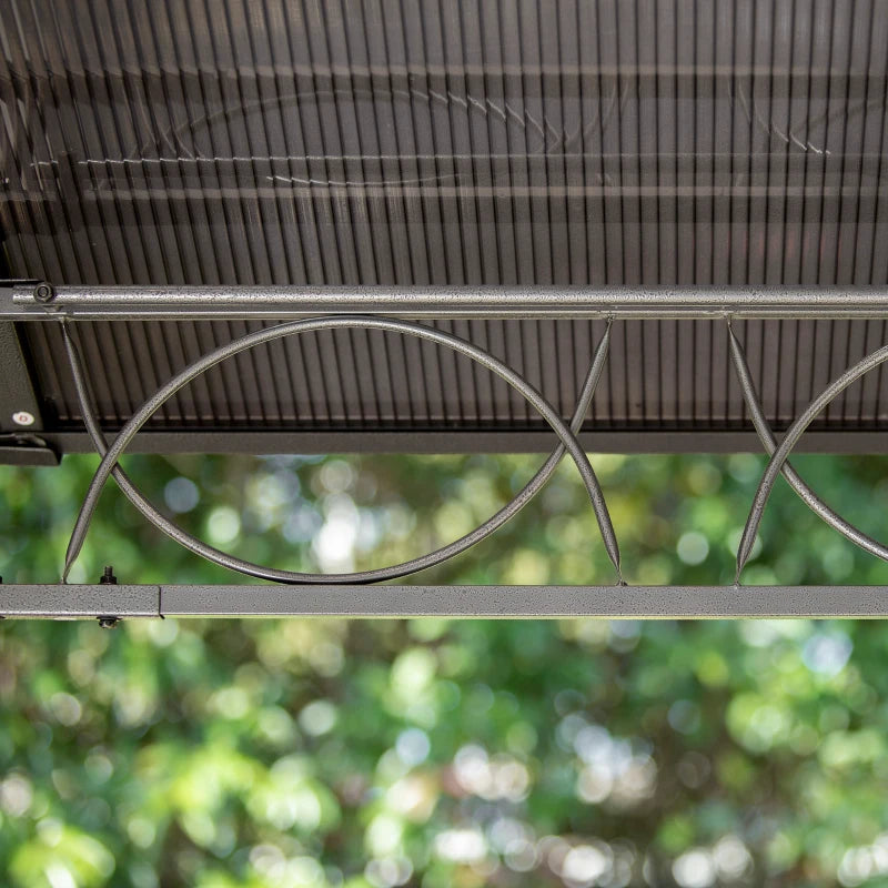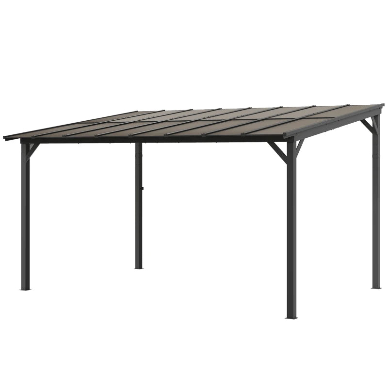 Outsunny 3 x 4.3m Metal Pergola with UPF 50+ and Waterproof Polycarbonate Roof, Wall-Mounted or Free Standing Garden Gazebo, Wind-resistant Outdoor Sun Shade, Dark Grey