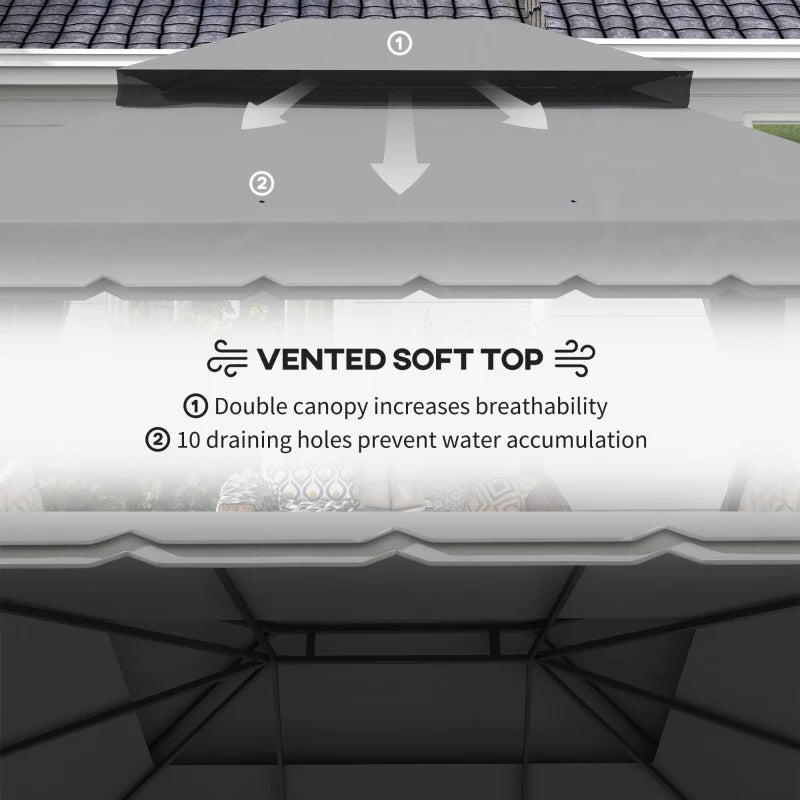 Outsunny 3.6 x 3 m Aluminium Hardtop Gazebo, with Accessories - Dark Grey
