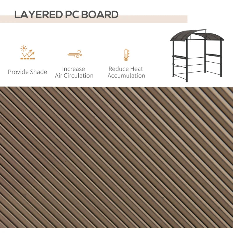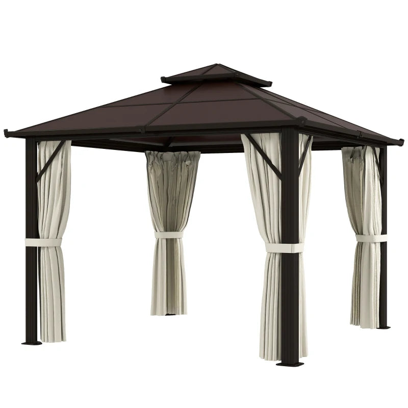 Outsunny 3 x 3.6m Hardtop Gazebo Canopy with Polycarbonate Roof Garden Pavilion with Removable Curtains and Steel Frame, Brown