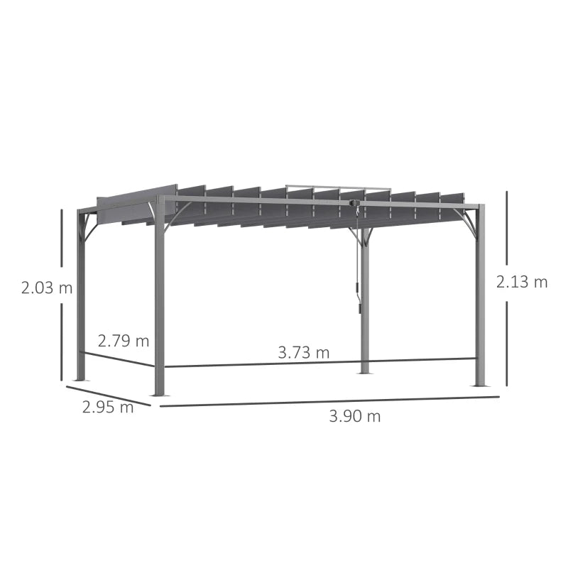 Outsunny 4 x 3(m) Outdoor Pergola with Retractable Roof, Aluminium Louvered Patio Gazebo Canopy for Lawn Garden Patio, Grey