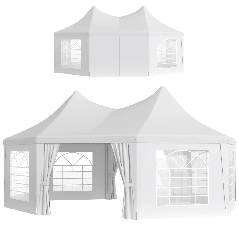 Outsunny 10 Sides Decagonal Garden Gazebo Marquee Party Tent Wedding Canopy Outdoor Heavy Duty Metal Frame (8.9m x 6.5m) - White
