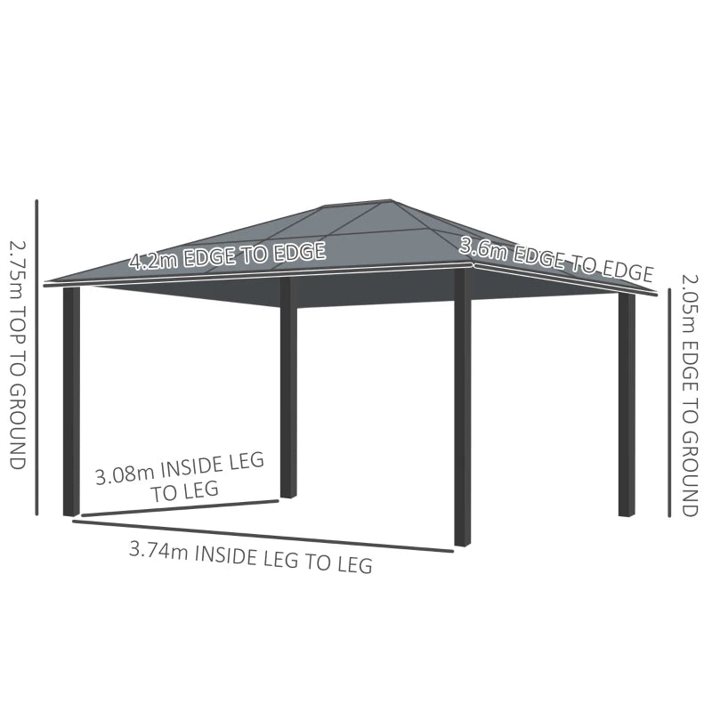 Outsunny 3.6 x 4m Hardtop Gazebo Canopy with Polycarbonate Roof and Aluminium Frame, Garden Pavilion with Mosquito Netting and Curtains