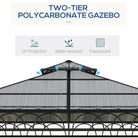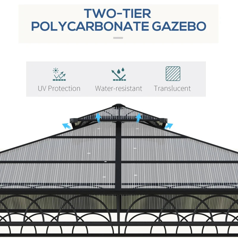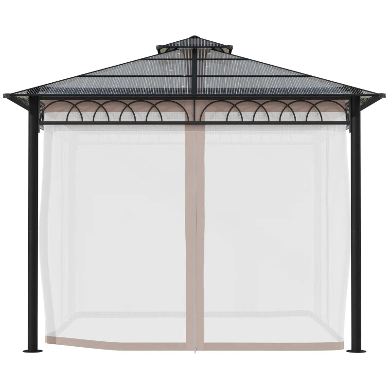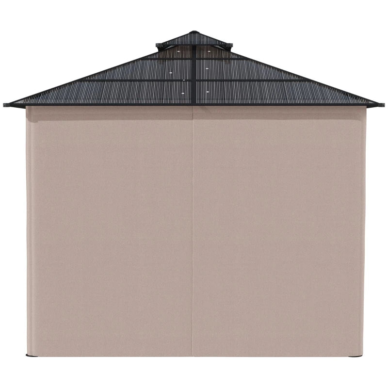 Outsunny 3 x 3 (m) Outdoor Polycarbonate Gazebo, Double Roof Hard Top Gazebo with Galvanised Steel Frame, Nettings & Curtains for Garden, Lawn, Patio and Deck, Khaki
