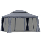 Outsunny 3 x 4m Aluminium Garden Gazebo, Marquee Canopy Shelter Pavilion Party Tent with Nets and Curtains for Garden and Deck, Dark Grey