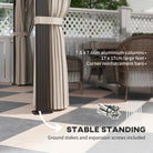 Transform your garden into a haven with the Outsunny polycarbonate gazebo. Featuring 6mm thick polycarbonate panels, this waterproof gazebo shields you from UV rays while keeping you cool with its clever two-tier airflow design. Stop the sun at any angle and get rid of unwanted winged guests with curtains and nettings. Enjoy a serene outdoor shelter with sides, great as a heavy-duty, permanent fixture for any patio.