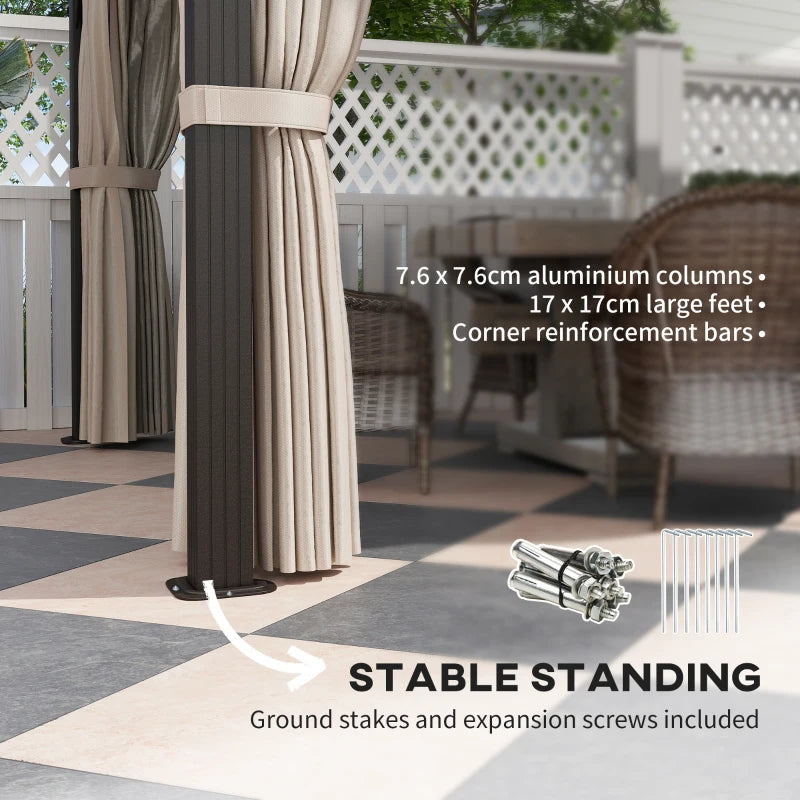 Outsunny 3 x 4m Hardtop Gazebo Canopy with UPF30+ Double Polycarbonate Roof, Aluminium Frame Garden Gazebo Permanent Pavilion with Mosquito Netting and Curtains for Patio, Deck, Beige