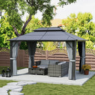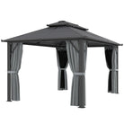 Outsunny 3 x 4m Hardtop Gazebo Canopy with UPF30+ Double Polycarbonate Roof, Aluminium Frame Garden Gazebo Permanent Pavilion with Mosquito Netting and Curtains for Patio, Deck, Grey