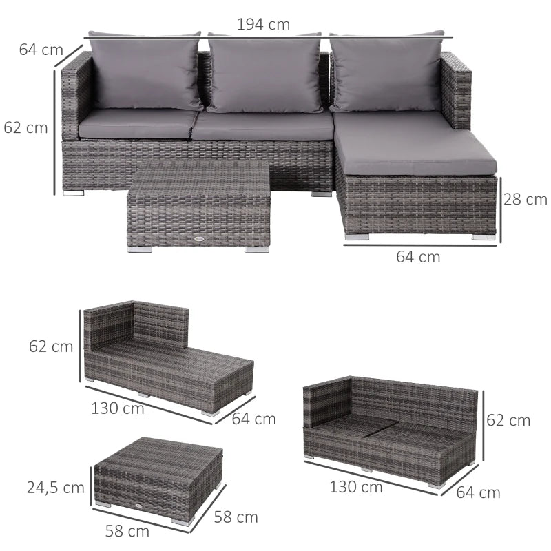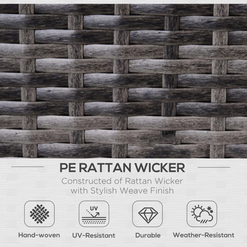 Outsunny 3PC Rattan Garden Furniture Storage Sofa Set 4 Seater Wicker Coffee Table Conservatory Sun Lounger Reclining Set Outdoor Weave with Cushion Grey