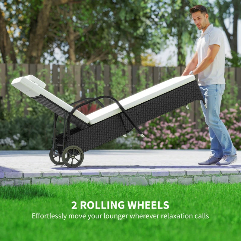 Outsunny Rattan 2-Seater Sofa Sun Lounger Bed-Black