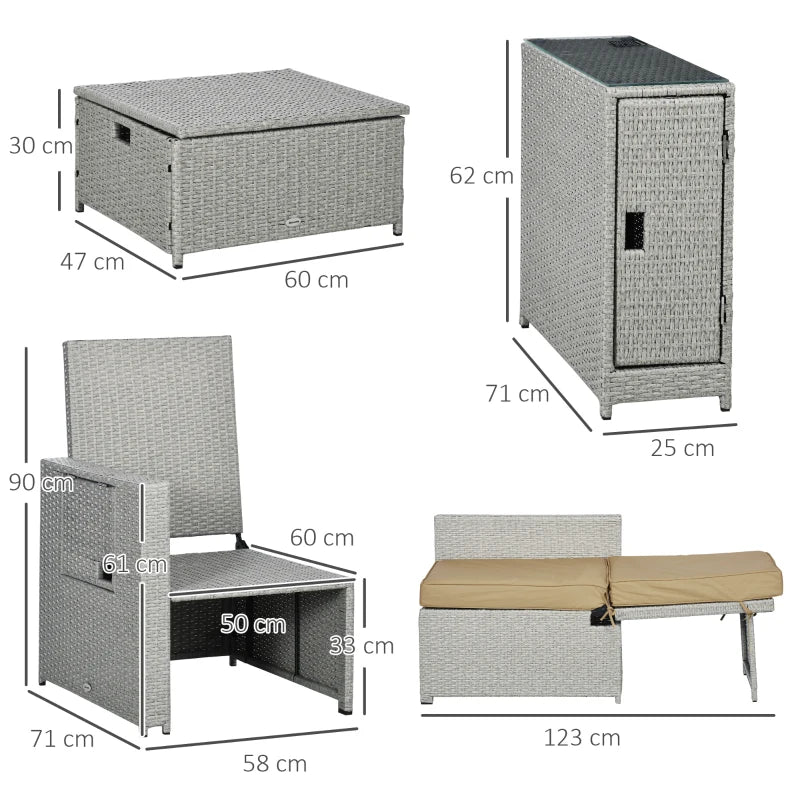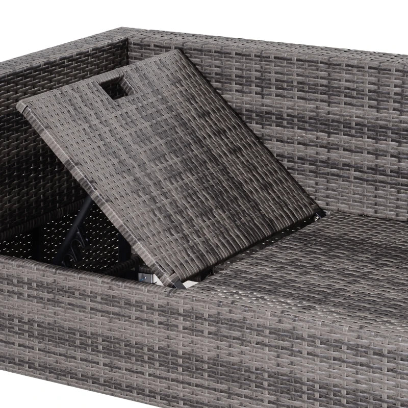 Outsunny Rattan Sun Lounger w/ Storage Tea Table & Footstools, Grey