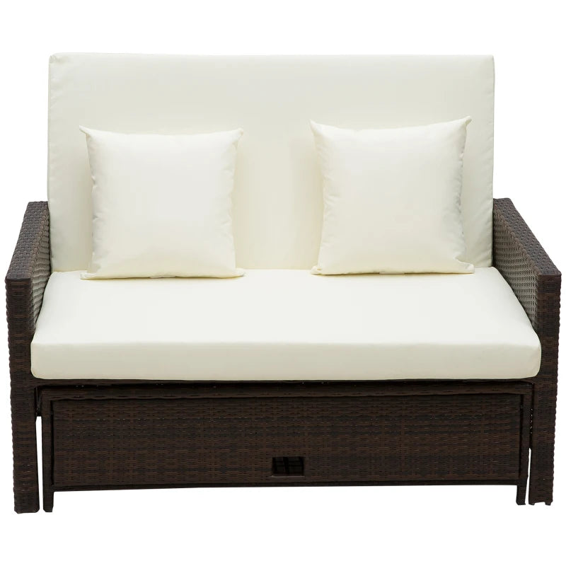 Outsunny 2-Seater Rattan Sofa Lounger Set-Brown