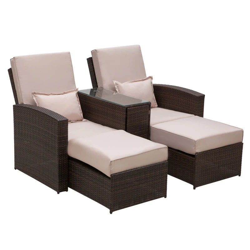 Outsunny 2-Seater Rattan Sofa Lounger Set-Brown