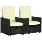 Outsunny 5PC PE Rattan Sun Lounger, Outdoor Wicker 5-level Adjustable Recliner Sofa Bed with Storage Side Table and Footstools, for Patio, Garden, Poolside, Black