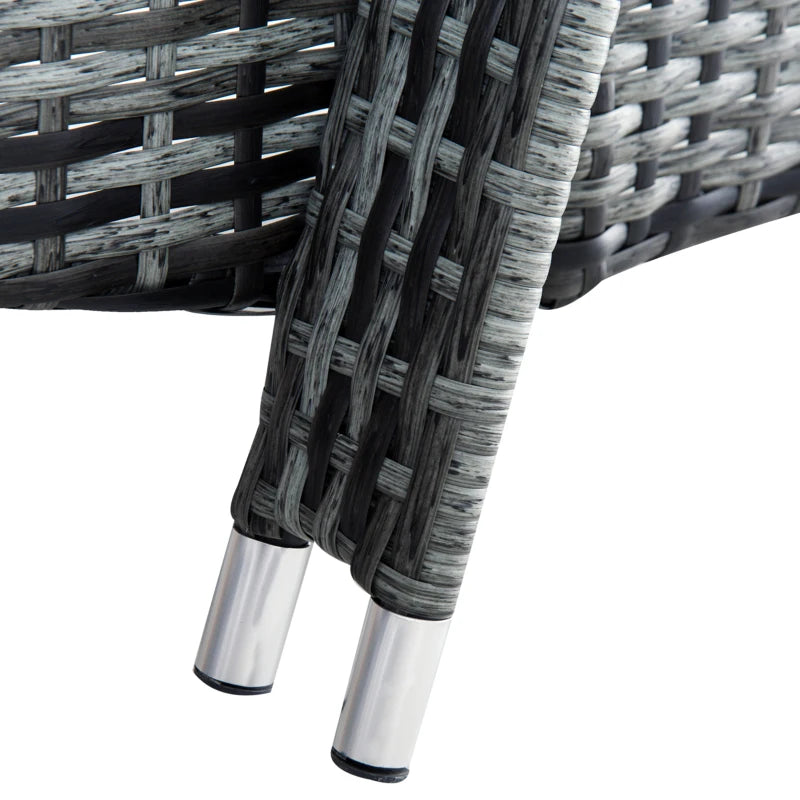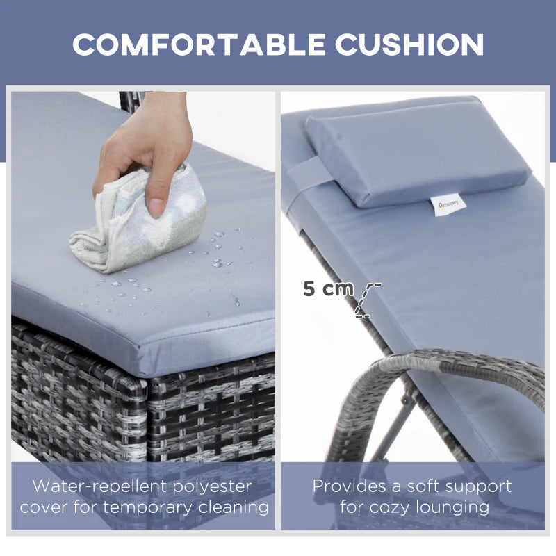 Outsunny 3 Pieces Rattan Sun Loungers, Garden Wicker Wheeling Recliner , PE Rattan Lounge Chairs w/ Cushions & Side Coffee Table Grey
