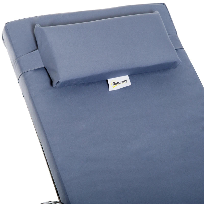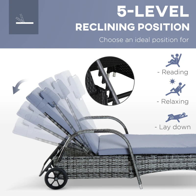Outsunny 3 Pieces Rattan Sun Loungers, Garden Wicker Wheeling Recliner , PE Rattan Lounge Chairs w/ Cushions & Side Coffee Table Grey