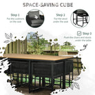 Outsunny 10 Seater Rattan Cube Garden Furniture Set, Rattan Dining Set with Cushions, Outdoor Dining Table and Chairs with 6 Armchairs, 4 Stools, Rectangular Wood Grain Plastic Top Table, Black