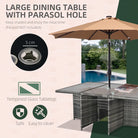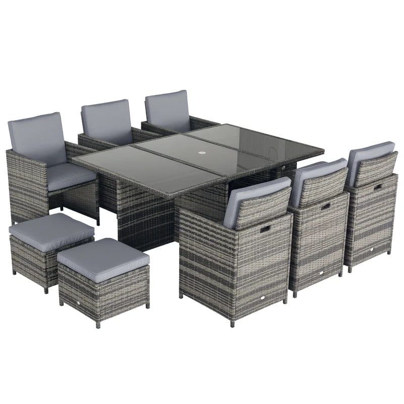 Outsunny 10 Seater Rattan Cube Garden Furniture Set with Parasol Hole, Rattan Dining Set with Cushions, Outdoor Dining Table and Chairs with Rectangular Glass Top Table for Patio, Mixed Grey