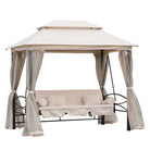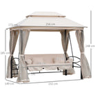 Outsunny 2-in-1 Convertible Gazebo Swing Chair Bed W/Netting, 245Lx165Wx243H cm-Beige/Black