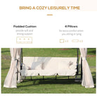 Relax comfortably outside with this swing chair bed from Outsunny. With a steel frame for supreme strength and durability, it is crafted into a 2-in-1 design that comfortably seats three people upright and allows one person to sleep on. Securely attached to the gazebo canopy, the padded bed glides gently for a relaxing experience, with five pillows for extra comfort. Four pull-back curtains on the gazebo ensure privacy when wanted, with zippable mosquito netting sewn in to protect you from any bugs. With a 2-tier canopy top to protect you from sun and showers, this swing chair gazebo is perfect for placing outside and drifting the day away.