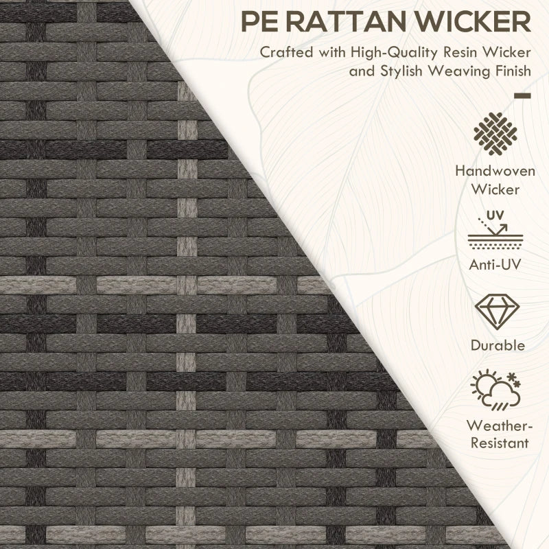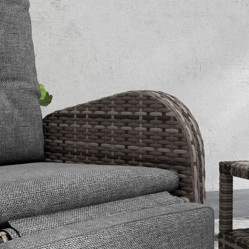 Unrivalled comfort for the garden and beyond with this Outsunny garden furniture set. Powder coated aluminium frames mean a strong core, wrapped in stylish plastic rattan - a protective shell. The two chairs feature a reclining back, maximum 150° angle, with footrest to elevate your lower body. The rattan bistro set is complete with a two-tier table for a handy holding spot.