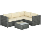 Relax in style, this season and beyond: welcome this Outsunny rattan sofa set into your garden and beyond. Although suggested as a rattan corner sofa shape, you can also sort it out long ways. A metal frame for a strong core, wrapped in plastic rattan-a stylish garden look, with double the durability. This conservatory furniture set comes with two loveseats - both come with padded cushions for comfort. Complete with a glass-top table.
