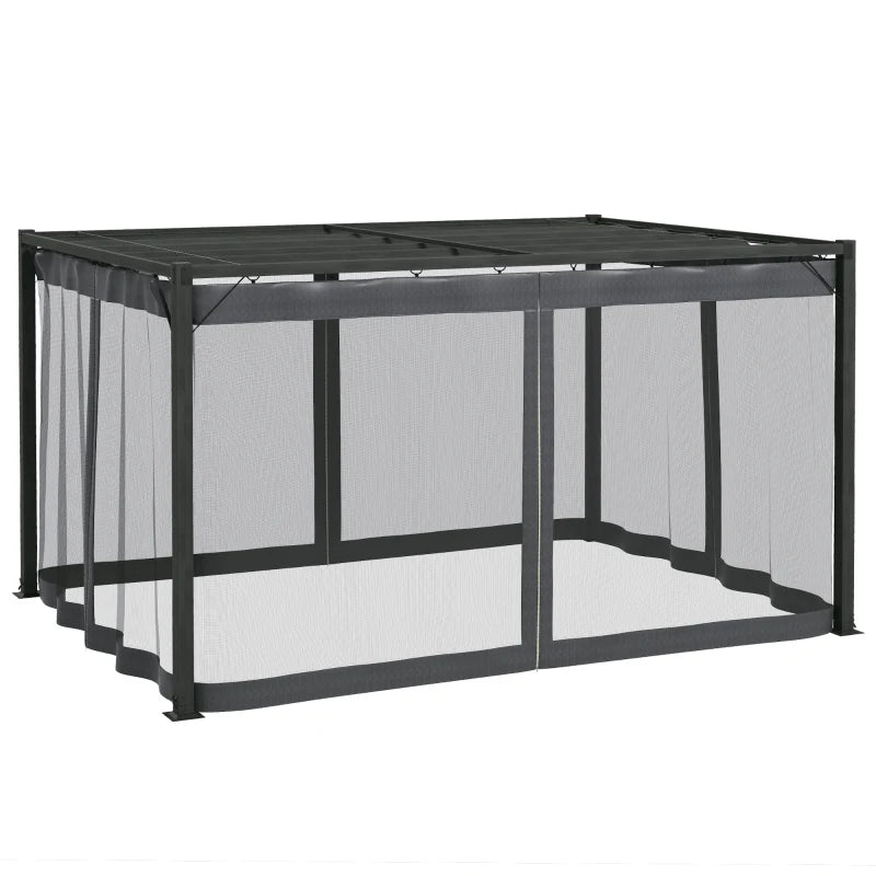 This Outsunny retractable pergola is a spacious outdoor shetler, which allows you to adjust the canopy as you desire - enjoy sunshine or relax in the shade. The aluminium structure is strong, with ground stakes and expansion screws included to keep it attached to the floor. Net curtains to protect inside from insects. Enjoy your outdoors better than ever before.
