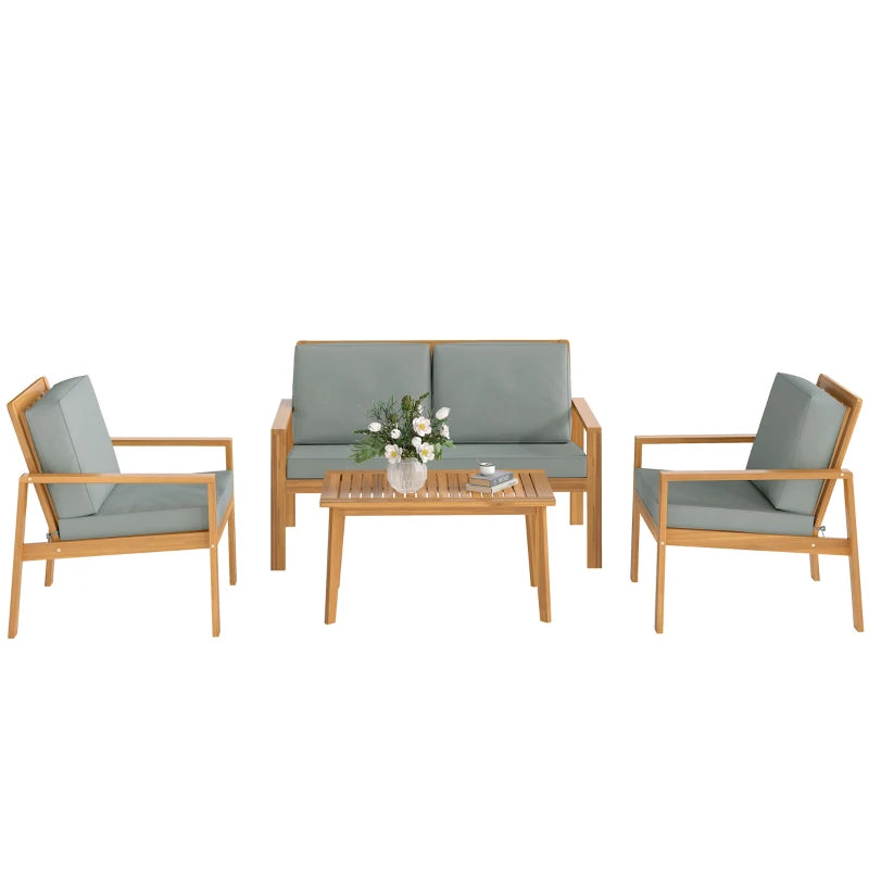 Outsunny 4-Piece Wooden Garden Furniture Set with Cushions - Teak