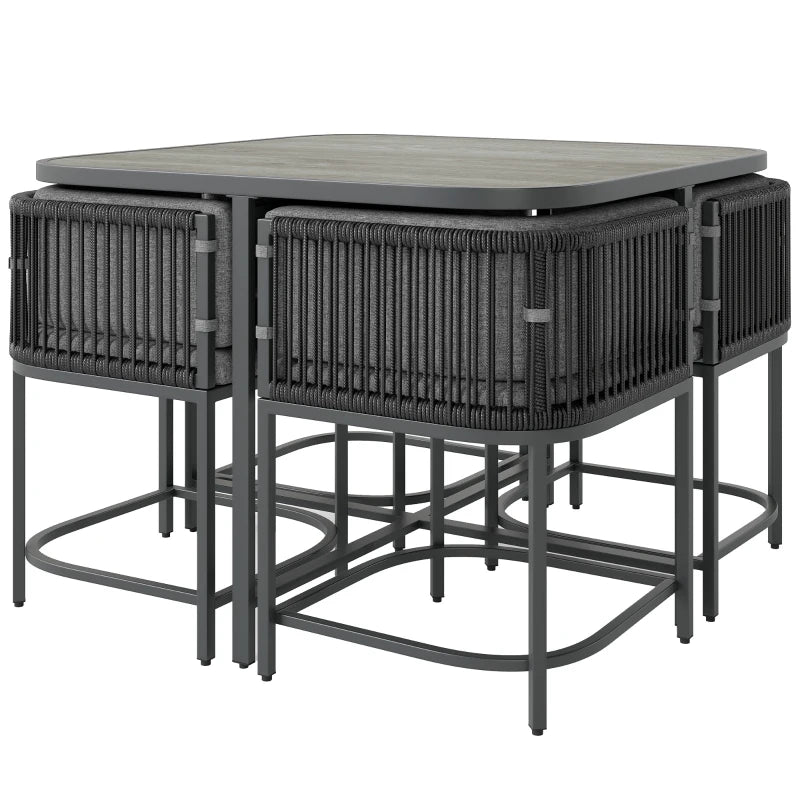 Outsunny 4-Seater Rattan Cube Garden Furniture Set with Cushions - Charcoal Grey