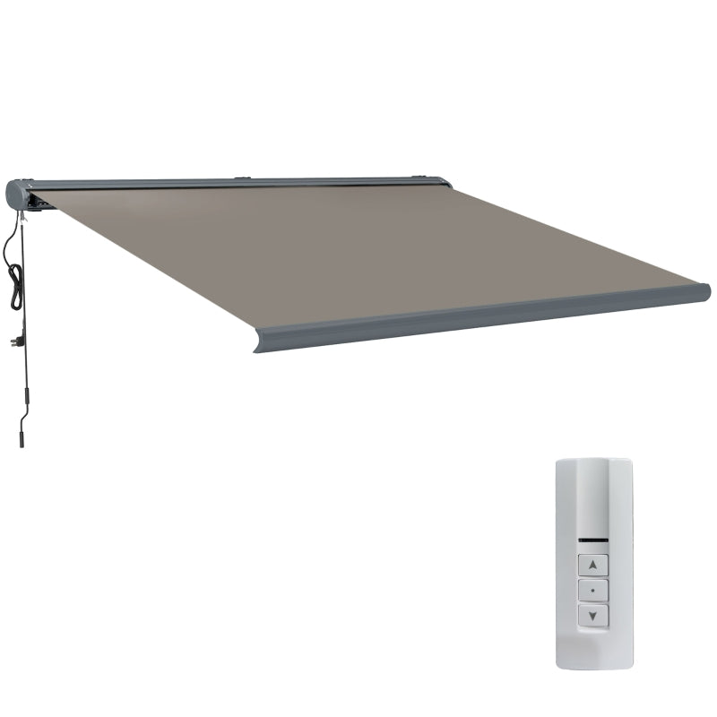 Outsunny 4 x 3(m) Full Cassette Electric Awning with Remote Controller, Aluminium Frame DIY Retractable Garden Awning, UPF50+ Sun Shade Canopy for Deck Door Window, Light Grey