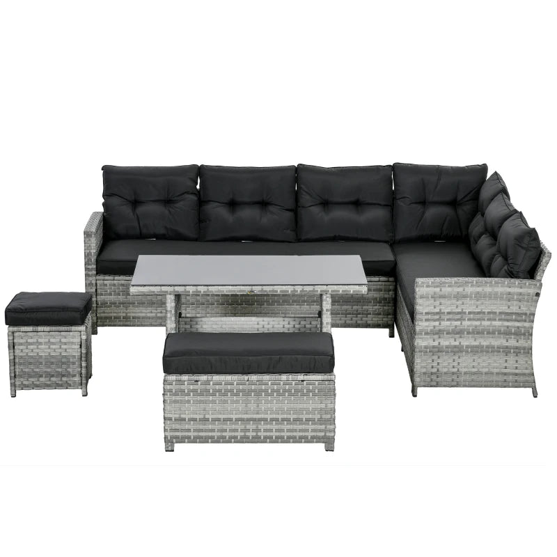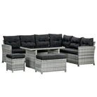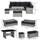 Make your outdoors just as inviting as the inside, thanks to this Outsunny garden sofa set. Comes with two three-seater sofas, two stools and a matching coffee table - relax with company. Powder coated steel frames for a strong structure, wrapped in stylish and protective plastic wicker. Complete with seat and back cushions for comfort.