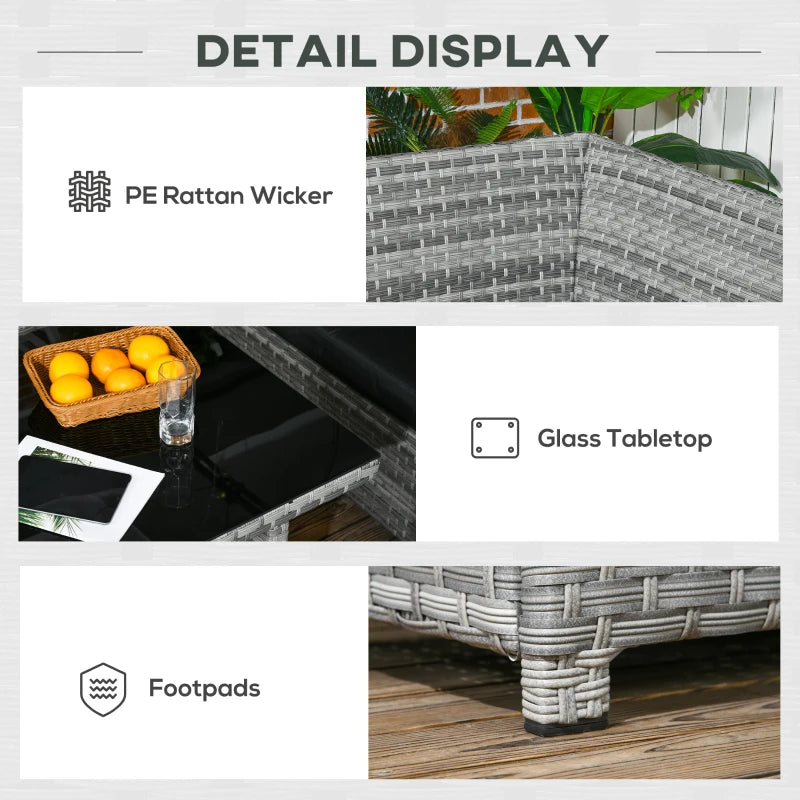 Outsunny 5-Piece Rattan Patio Furniture Set with Corner Sofa, Footstools, Glass Coffee Table, Cushions, Mixed Grey