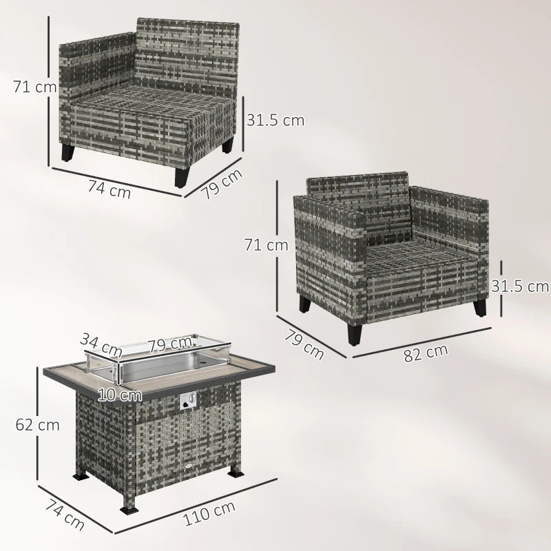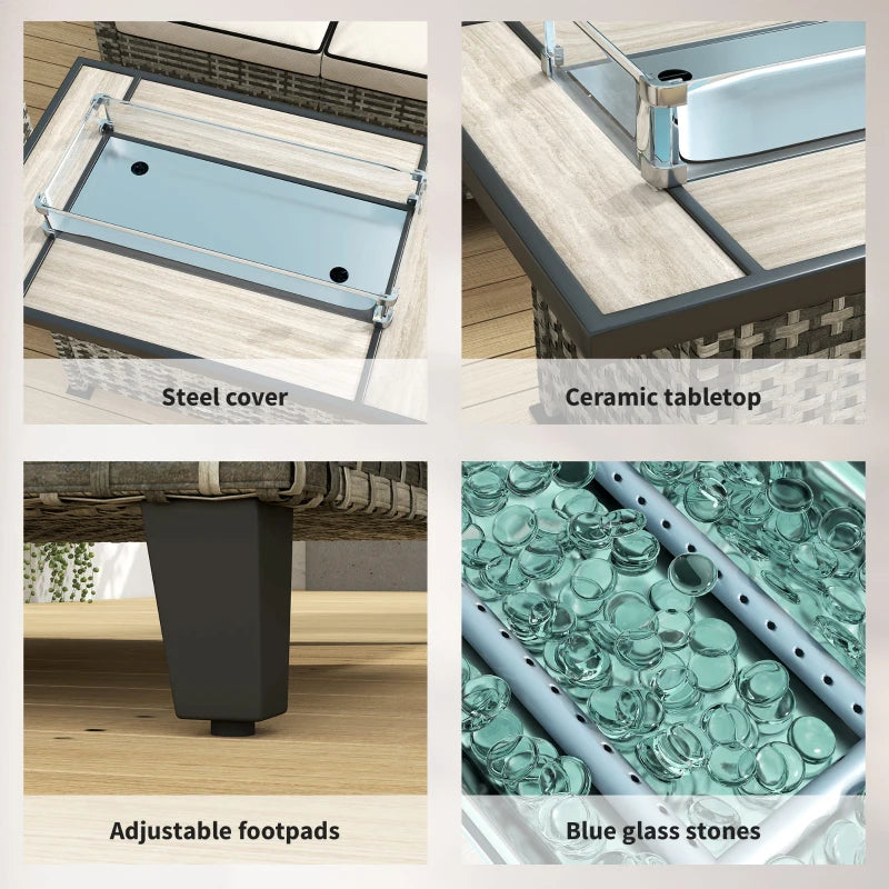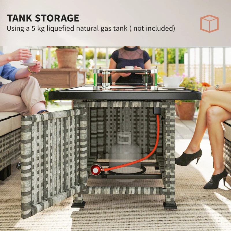 Outsunny 5-Piece Rattan Patio Furniture Set with Gas Fire Pit Table, Loveseat Sofa, Armchairs, Cushions, Pillows, Grey