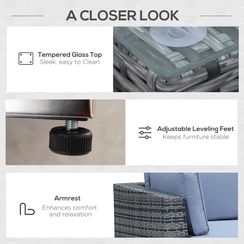Outsunny 8 Piece Rattan Corner Sofa Set with Wide & Deep Seat, Assembled Aluminium PE Rattan Garden Furniture Set with Thick Cushions and Glass Top Table for Outdoor, Conservatory, Grey
