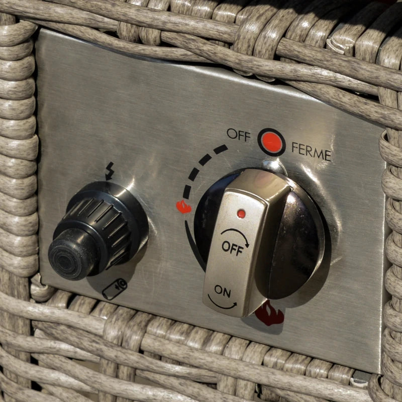 - Set includes two 3-seater sofas, two footstools and a gas fire pit table