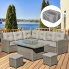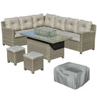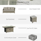 Outsunny 8-Seater Outdoor PE Rattan Sofa Set Conversation Set w/ Fire Pit Table, L-Shape Sofa, Footstool and Furniture Cover