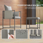 Create a go-to dining space in the garden with this Outsunny outdoor dining set. Powder coated steel frames mean a strong core for all pieces, with cushions on the chairs and stools for comfort. The cubic shape allows the chairs to be tucked away under the table -saves space when the balcony furniture set isn't being used. The PSPC plastic tabletop ensures a tough dining surface, finished with a beautiful wood effect.