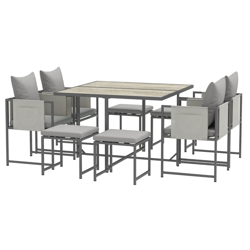 Outsunny Nine-Piece Steel Frame Garden Dining Set - Grey