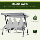 Outsunny Outdoor 3-person Metal Porch Swing Chair Bench, Grey