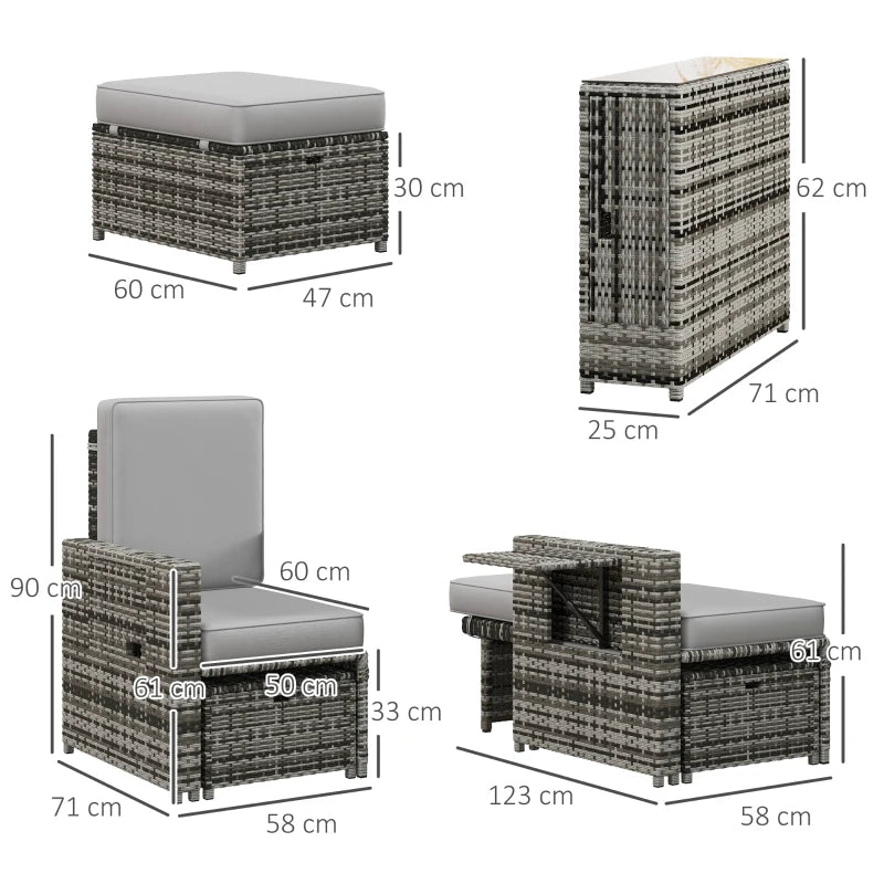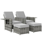 Outsunny Rattan Sun Lounger w/ Storage Tea Table & Footstools, Grey