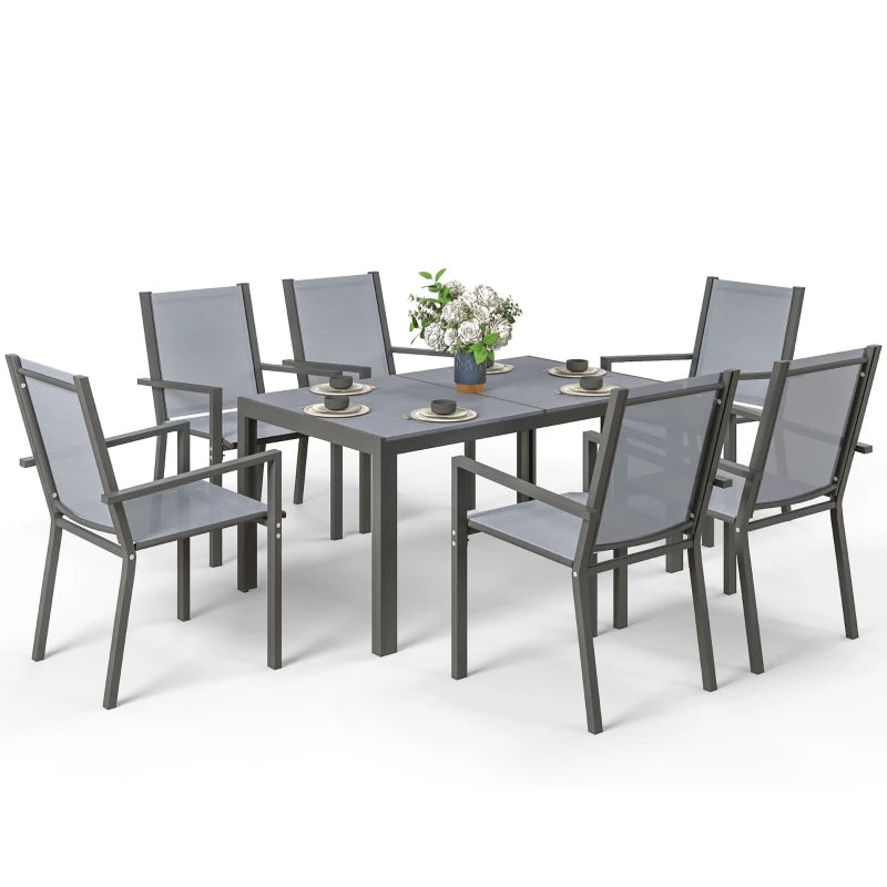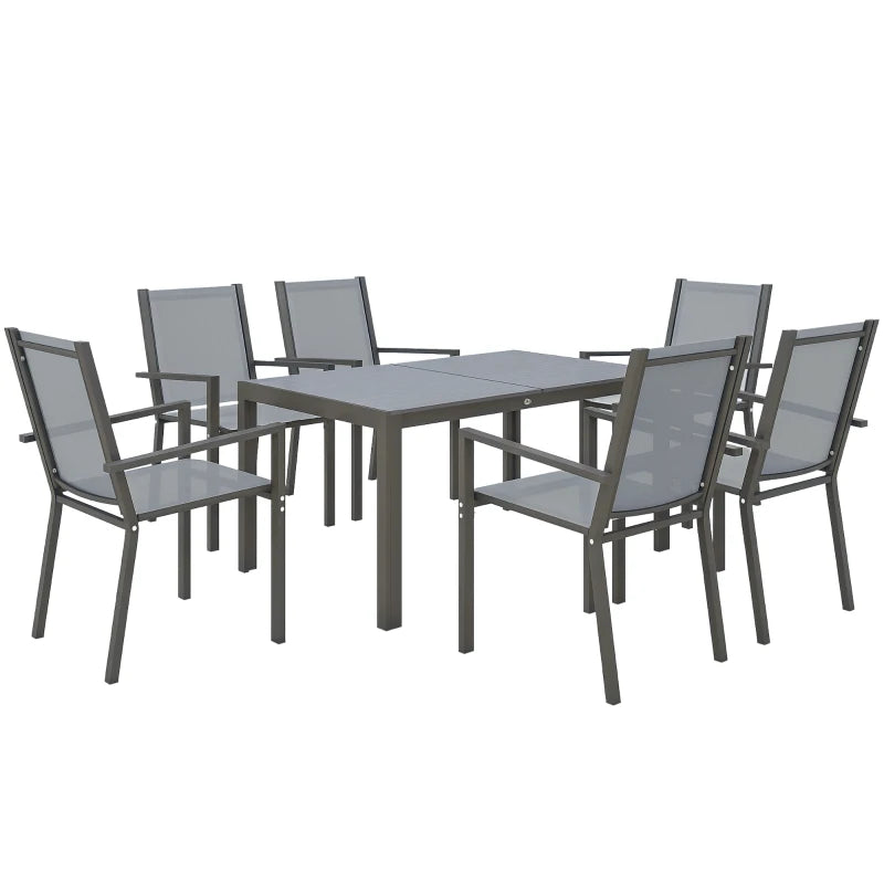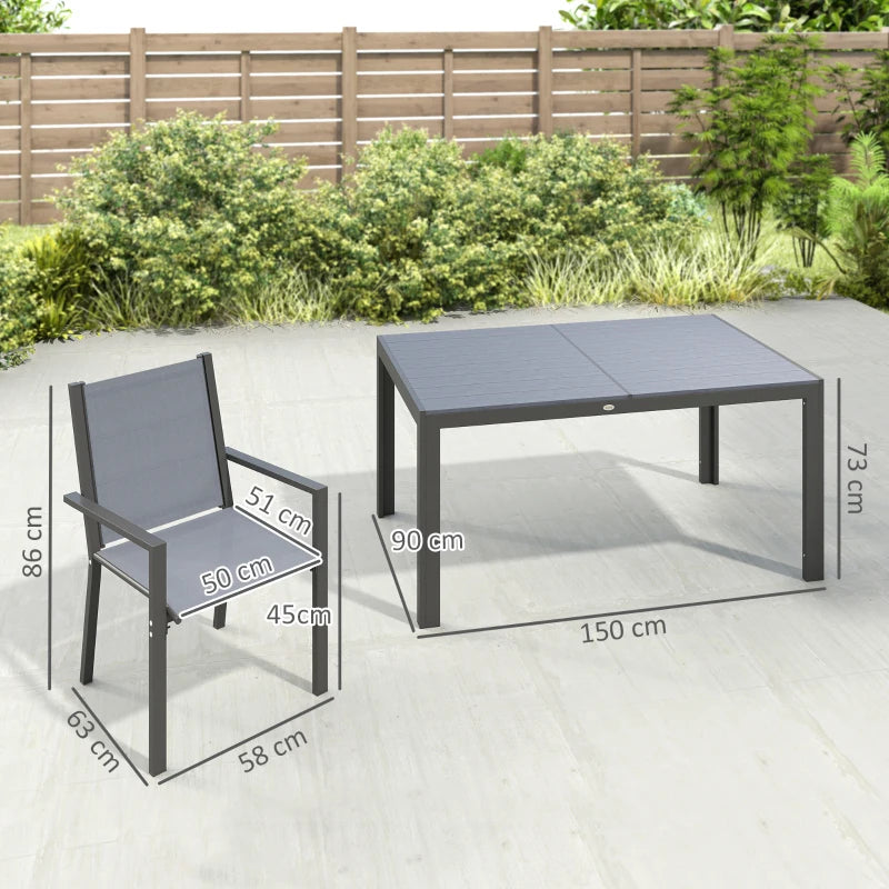 Outsunny Seven-Piece Garden Dining Set, with Plastic Wood-Top Table - Grey