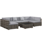 Outsunny Seven-Piece Rattan Garden Set, with Glass-Top Table - Mixed Grey