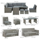 Outsunny Seven-Piece Rattan Garden Sofa Set, with Expanding Table - Grey
