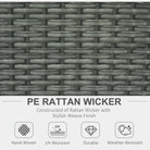 Outsunny six-piece rattan dining set is designed for those who cherish the fusion of comfort and aesthetics. Crafted with a robust powder-coated steel frame and elegantly wrapped in weather-resistant plastic wicker, this set promises durability against the elements. The reclining armchairs is adjustable, paired with plush cushions, offering unparalleled comfort for leisurely afternoons. Transform your garden into a haven of relaxation.